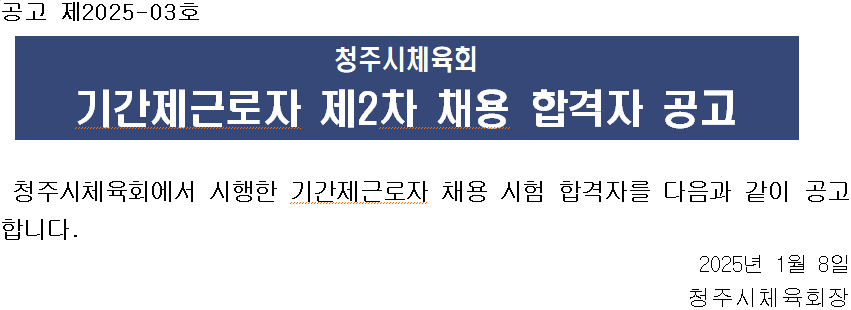 | 청주시체육회 기간제근로자 제2차 채용 합격자 공고 | |